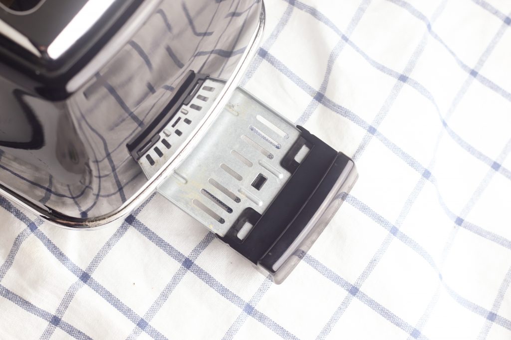 When the inside of the toaster is clean, it’s time to tackle the outside. Clean the exterior of your toaster with a damp cloth. If your toaster needs a bit heavier of a clean. An all-purpose cleaner is safe to use on the outside of the appliance. Spray the cleaning cloth with the cleaner and wipe the toaster’s exterior. Paying attention to cracks and crevices where crumbs may be hiding. To get deep inside cracks along the exterior of your toaster. Wrap the tip of a butter knife with a damp cloth and wipe along the inside of the crack. Finish by wiping the toaster’s knobs to remove debris and residue.